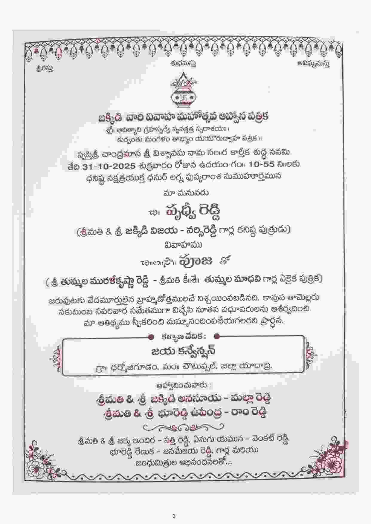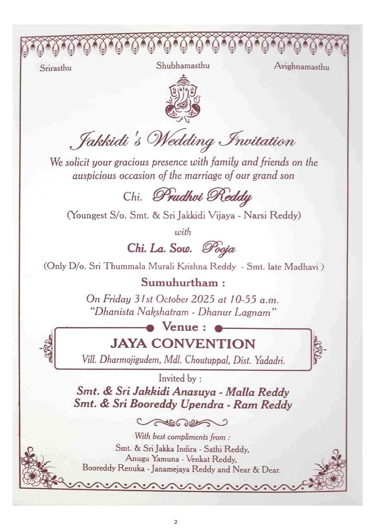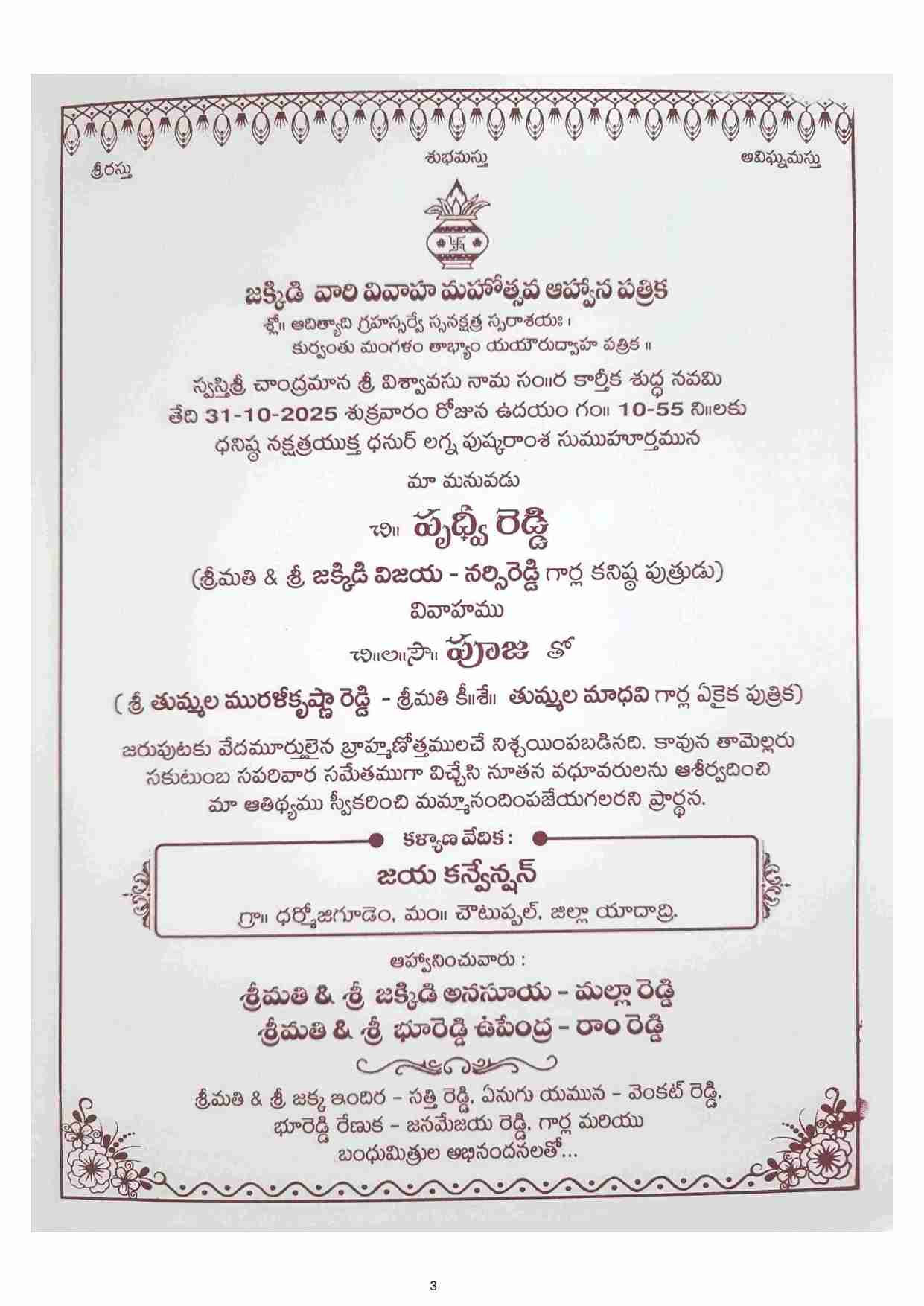 Venue: Jaya Convention, Dharmojigudem, Choutuppal